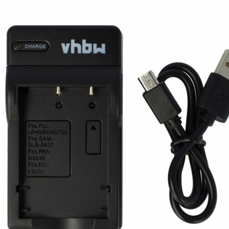 Изключително практична зарядна станция VHBW за зареждане на батерии за фотоапарати/видеокамери, която работи през MicroUSB конектора. Зарядната станция се свързва с USB кабел към всяко захранване за мобилен телефон или таблетен компютър, който работи чрез MicroUSB конектор. Той съдържа LED индикатор за състоянието, който ни показва състоянието на зареждане на батерията. Включен е и USB кабел с дължина 40 см.