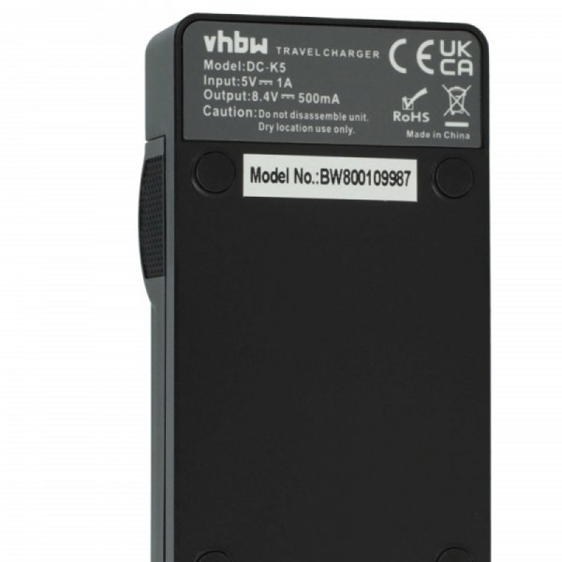 Изключително практична зарядна станция VHBW за зареждане на батерии за фотоапарати/видеокамери, която работи през MicroUSB конектора. Зарядната станция се свързва с USB кабел към всяко захранване за мобилен телефон или таблетен компютър, който работи чрез MicroUSB конектор. Той съдържа LED индикатор за състоянието, който ни показва състоянието на зареждане на батерията. Включен е и USB кабел с дължина 40 см.