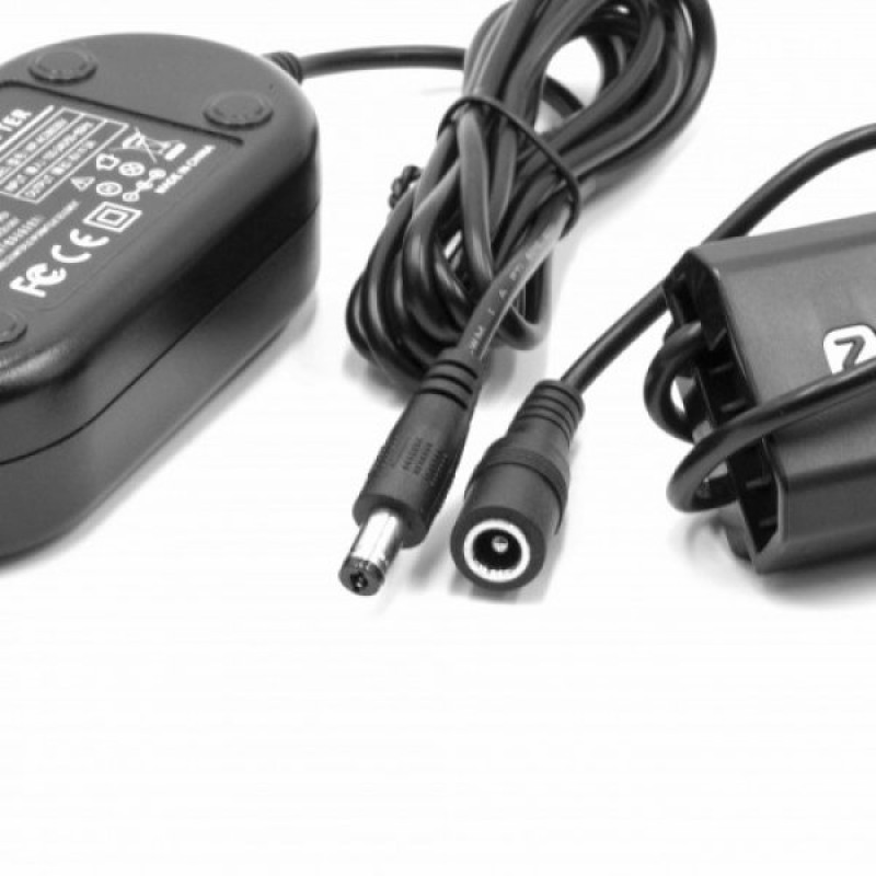 Компактното захранване е предназначено за свързване на фотоапарат или видеокамера директно към външен източник на напрежение или обикновен електрически контакт. Skupna дължина kabla je прибл. 2,85 m.