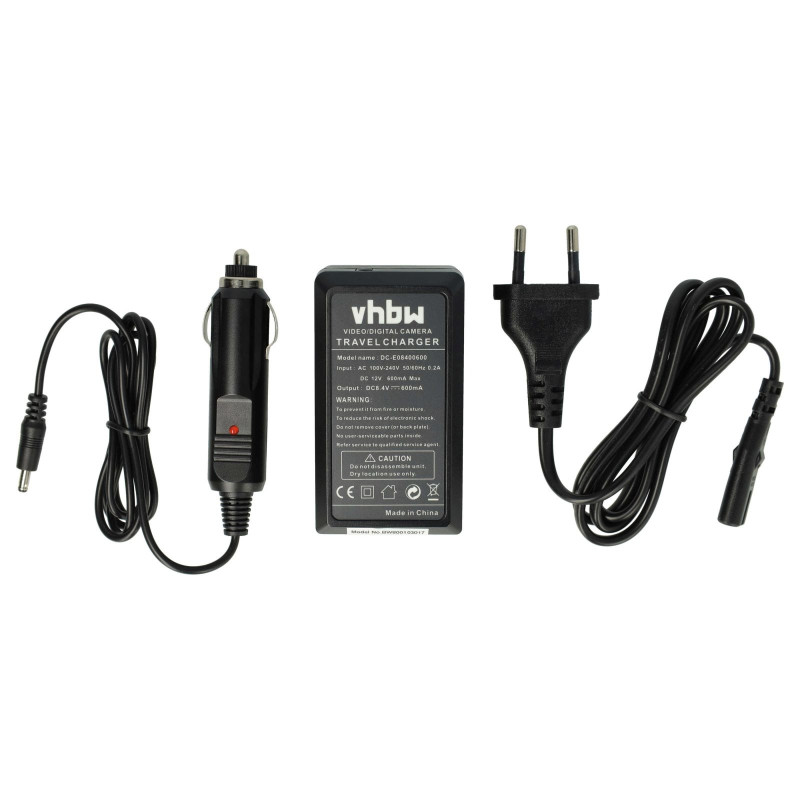 Компактно настолно зарядно устройство за зареждане на батерии за фотоапарати/видеокамери, което може да се включи в обикновен електрически контакт или в автомобилен контакт. LED индикаторът за състояние показва състоянието на зареждане на батерията. Зарядното устройство се изключва автоматично, когато батерията е пълна.