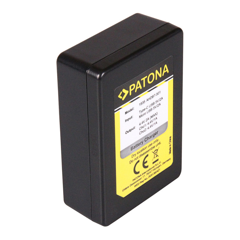 Изключително практична зарядна станция Patona за зареждане на батерии за фотоапарати/видеокамери, която работи чрез MicroUSB конектор. Зарядната станция се свързва с USB кабел към всяко захранване за мобилен телефон или таблетен компютър, който работи чрез MicroUSB конектор. Той съдържа LED индикатор за състоянието, който показва състоянието на зареждане на батерията. Заряден ток: 700 mA (една батерия) или 500 mA (две батерии). MicroUSB кабел е включен!