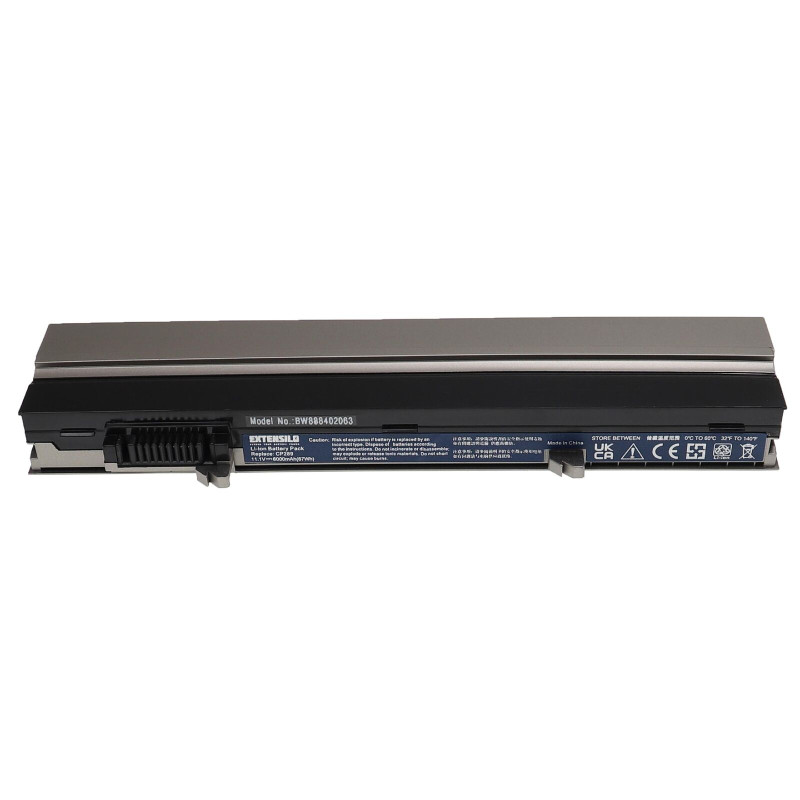 - Резервната батерия е проектирана по технологията на немския производител Extensilo, което гарантира първокласно качество. Батерията е с вградени Samsung Li-Ion клетки с по-голям капацитет (тип 18650-30A), тъй като вместо обичайните клетки с капацитет 2 200 mAh се използват по-мощни клетки с капацитет 3 000 mAh. Следователно, въпреки непроменените външни размери, батерията е с много по-голям капацитет от оригиналната. Това гарантира значително по-дълго време за работа на лаптоп (приблизително 35%) между отделните цикли на зареждане.