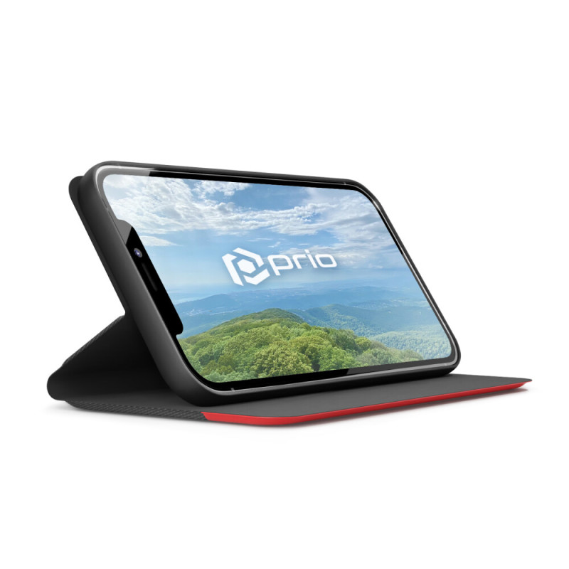 Флип калъф за Apple iPhone 13 Mini от изкуствена кожа червено-черен