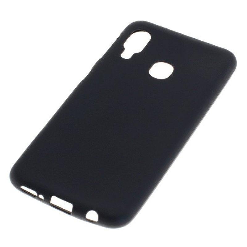 Черен силиконов калъф за Samsung Galaxy A20E, който осигурява пълна защита на телефона. Калъфът е тънък и елегантен и перфектно пасва на телефона, така че няма да имате усещането за прекомерна дебелина.