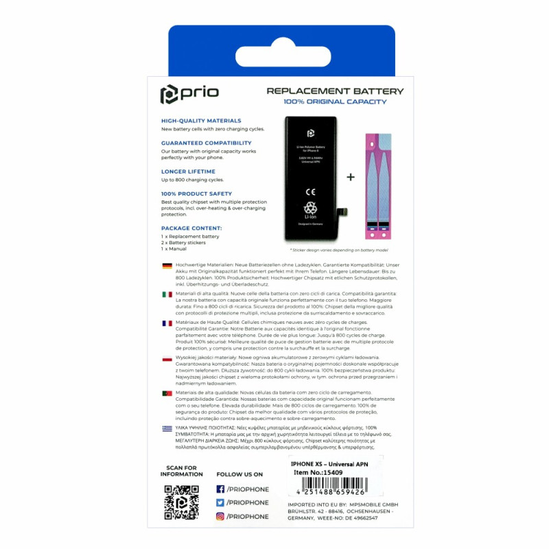 • Резервната батерия е изработена по дизайн и технология на немския производител Prio, което гарантира отлично качество