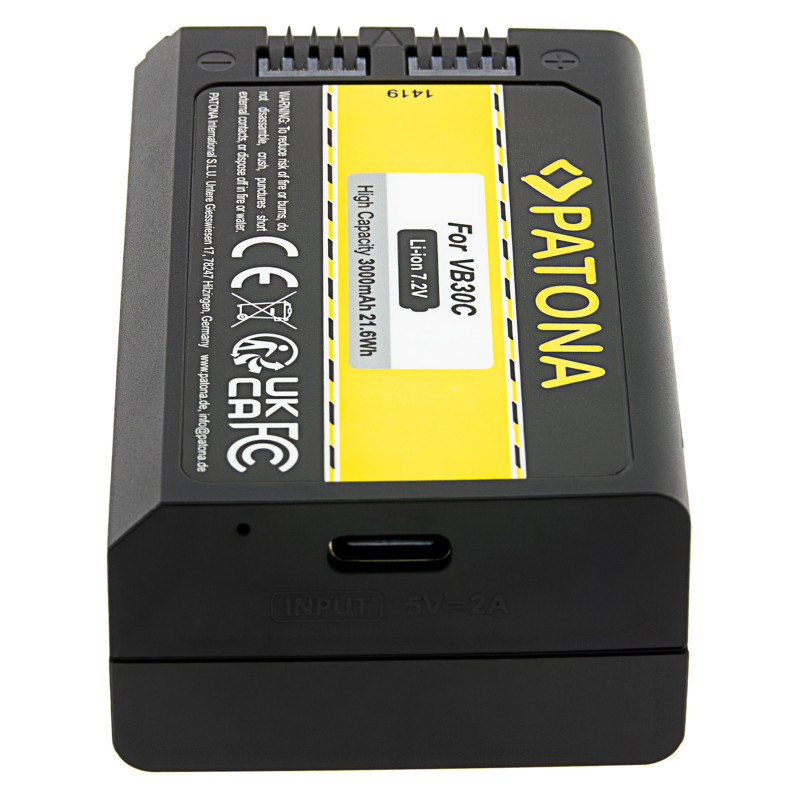 Премиум Li-ion батерия от немския производител Patona. Тази батерия има вграден USB-C конектор 5 V/2 A, чрез който можем да я зареждаме.