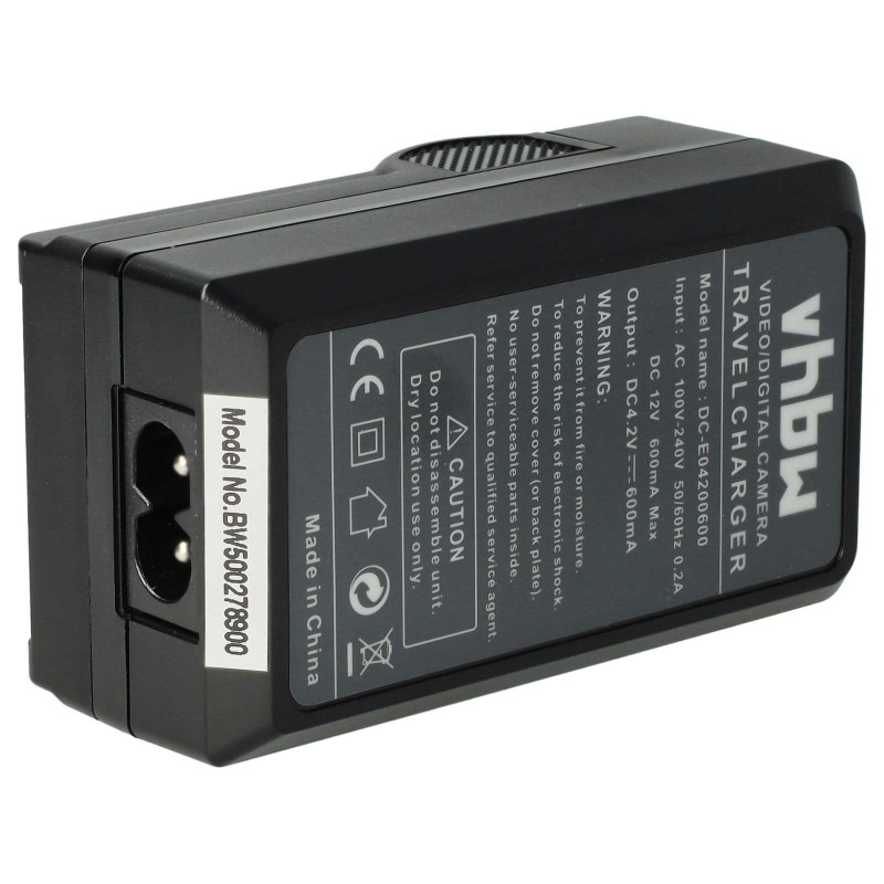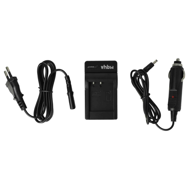 Компактно настолно зарядно устройство за зареждане на батерии за фотоапарати/видеокамери, което може да се включи в обикновен електрически контакт или в автомобилен контакт. LED индикаторът за състояние показва състоянието на зареждане на батерията. Зарядното устройство се изключва автоматично, когато батерията е пълна.